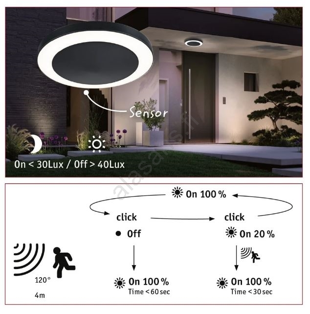 Paulmann 94526 - LED/14W IP44 Ulkokattovalo anturilla CIRCULA 230V | Alasans