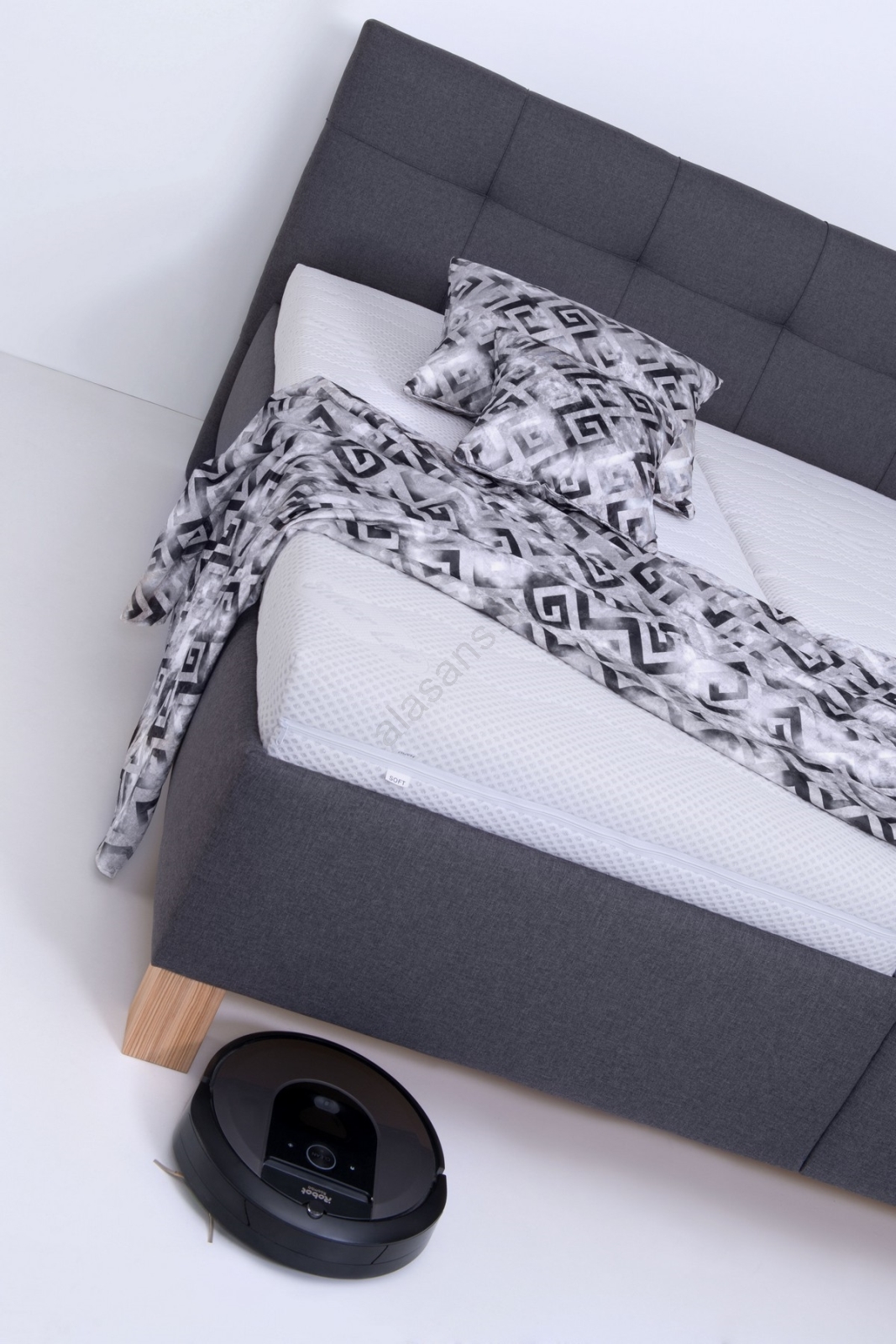• Vuode on varustettu tilavalla säilytystilalla vuodevaatteiden ja muiden tavaroiden säilytykseen.
