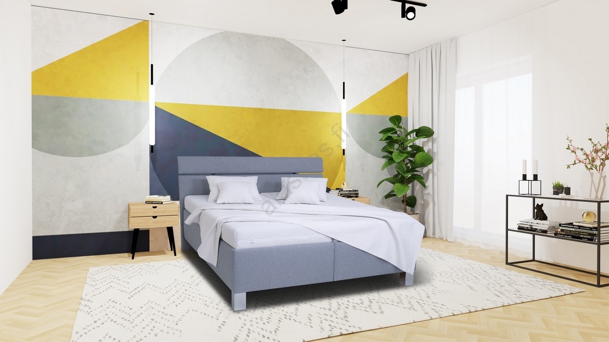 • Mukava jaettu sängynpääty - verhoiltu miellyttävällä kankaalla ja polyuretaanivaahdolla pehmeyttä ja mukavuutta varten, ihanteellinen esimerkiksi lukemiseen.