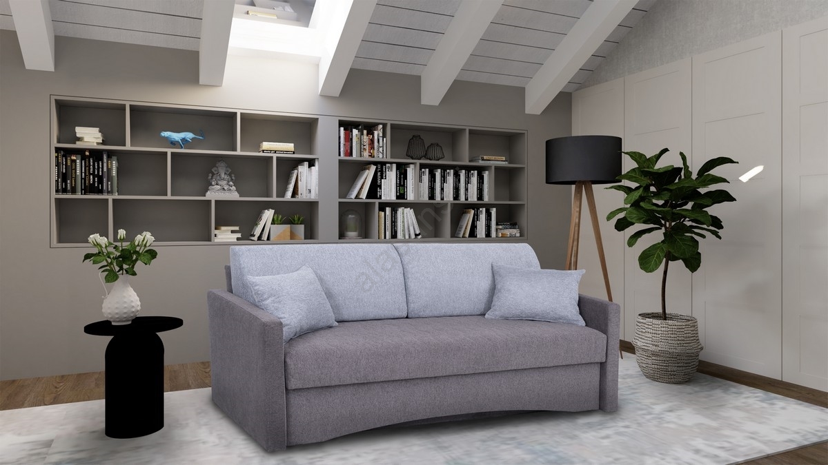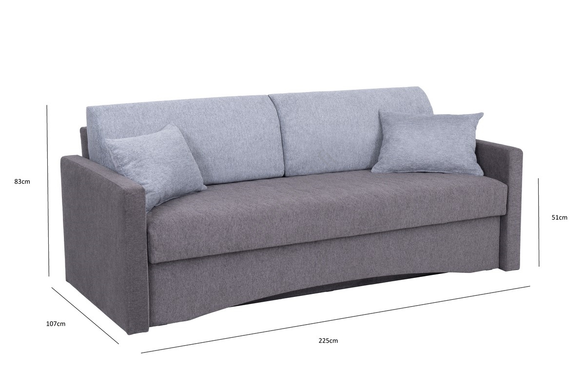 Verhoiltu, avattava kolmen istuttava sohva päivittäiseen nukkumiseen käsinojilla PAUL, harmaa | Alas
