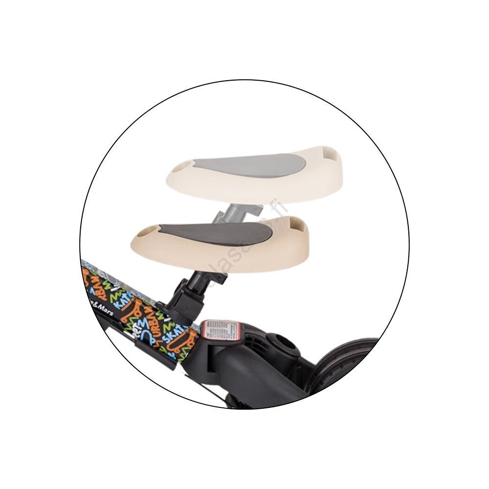 • Säädettävät ohjaustangot kumisilla kahvoilla, irrotettavat polkimet, säädettävä istuin turvavöillä.