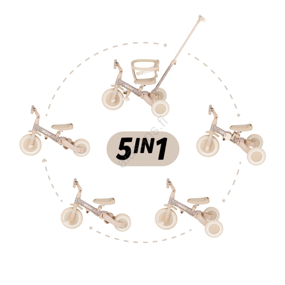 • Monikäyttöinen kolmipyörä, jossa viisi toimintatilaa lapsen iän ja taitojen mukaan.