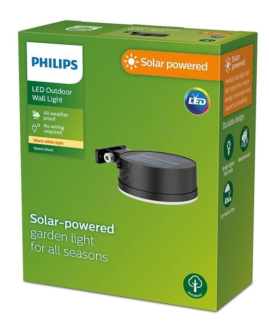Philips VYNCE LED 1,5W/3,7V 1500 mAh IP44 aurinkoseinävalaisin | Alasans