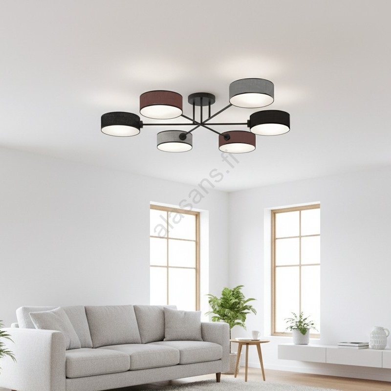 Pintakiinnitteinen kattokruunu MAGA 6xE14/10W/230V musta/ruskea/harmaa | Alasans