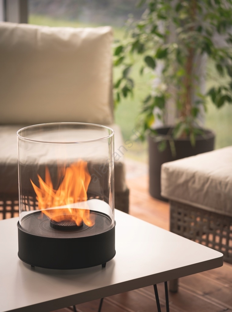 • Bio-takassa on suojaava lasielementti, joka paitsi takaa turvallisuutesi, myös ylläpitää liekin vakautta.