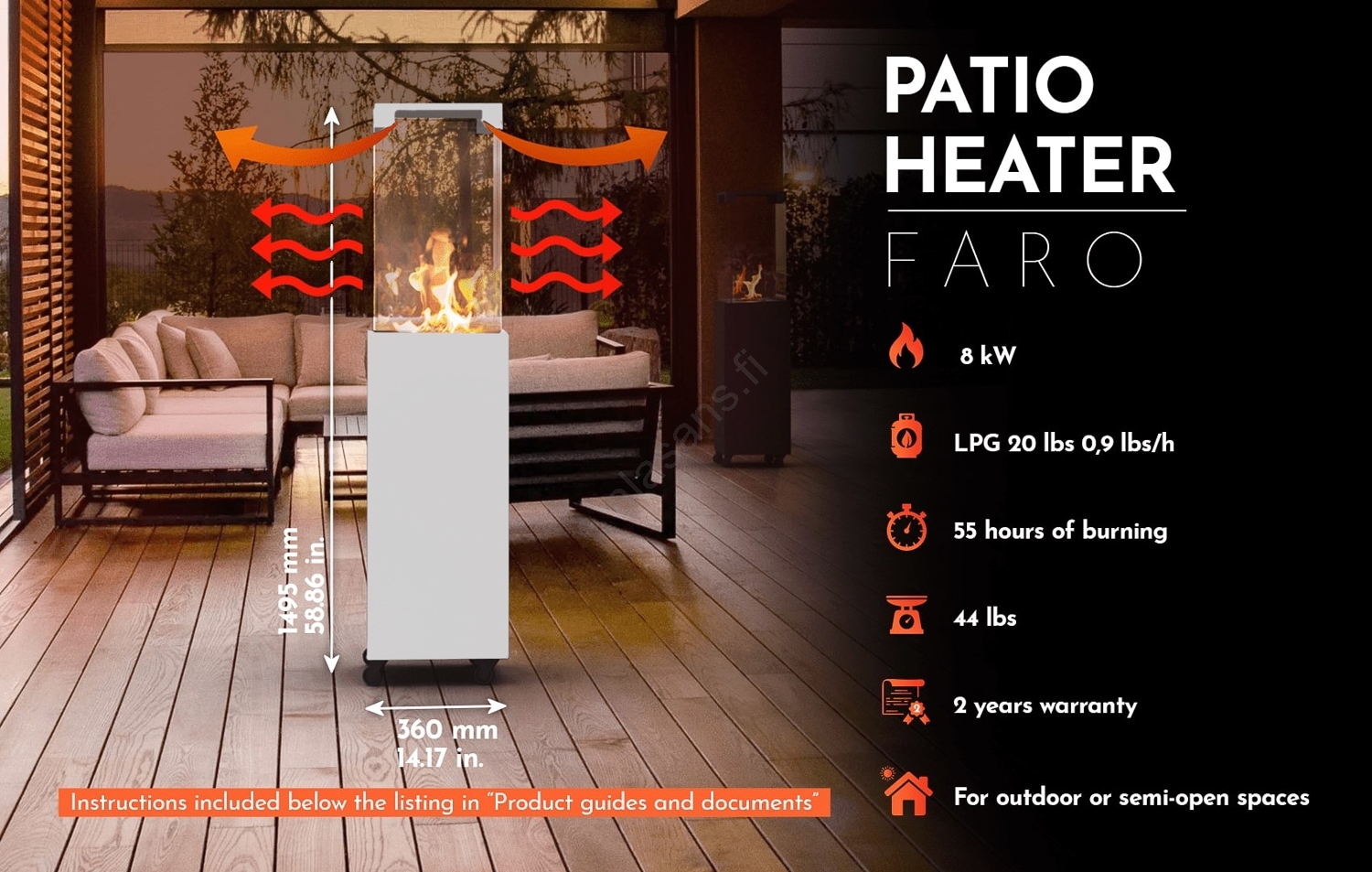• Pakkauksessa oleva kansi suojaa kaasulämmitintä kaikkina vuodenaikoina.