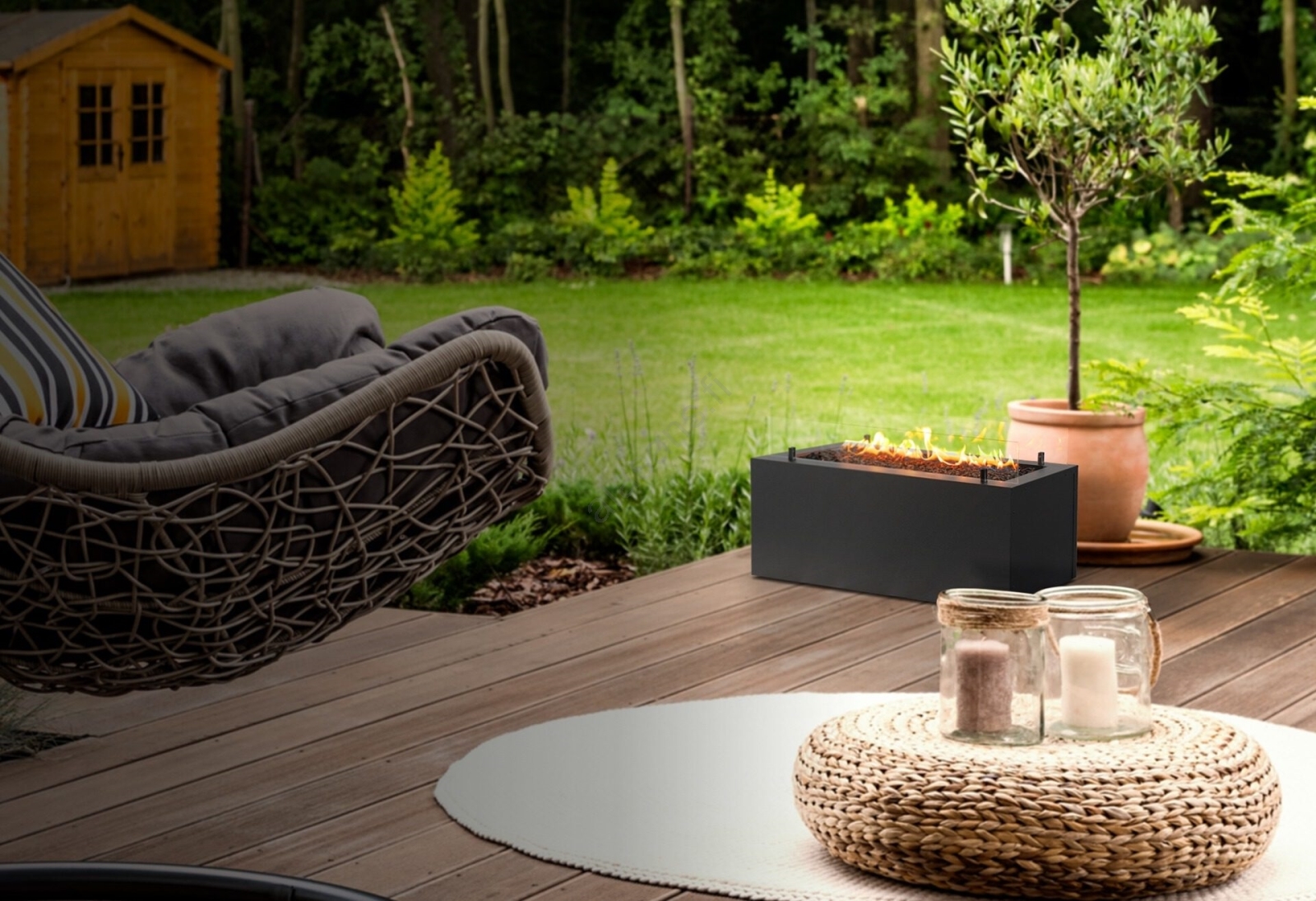 • Tämä moderni minimalistinen takka tuottaa miellyttävää lämpöä.