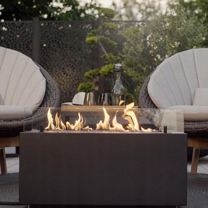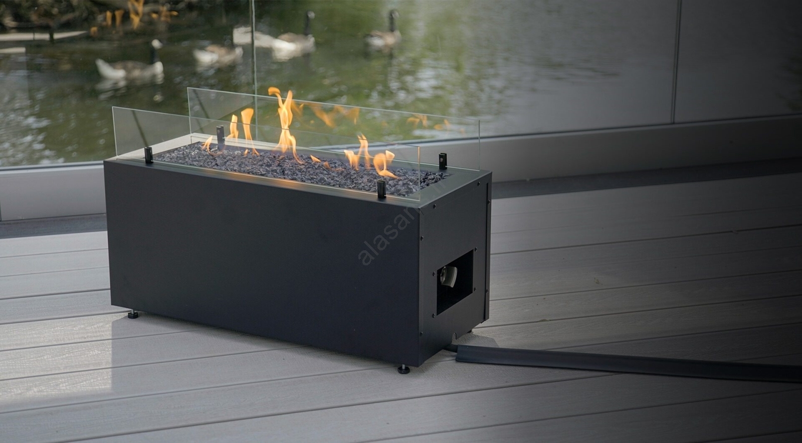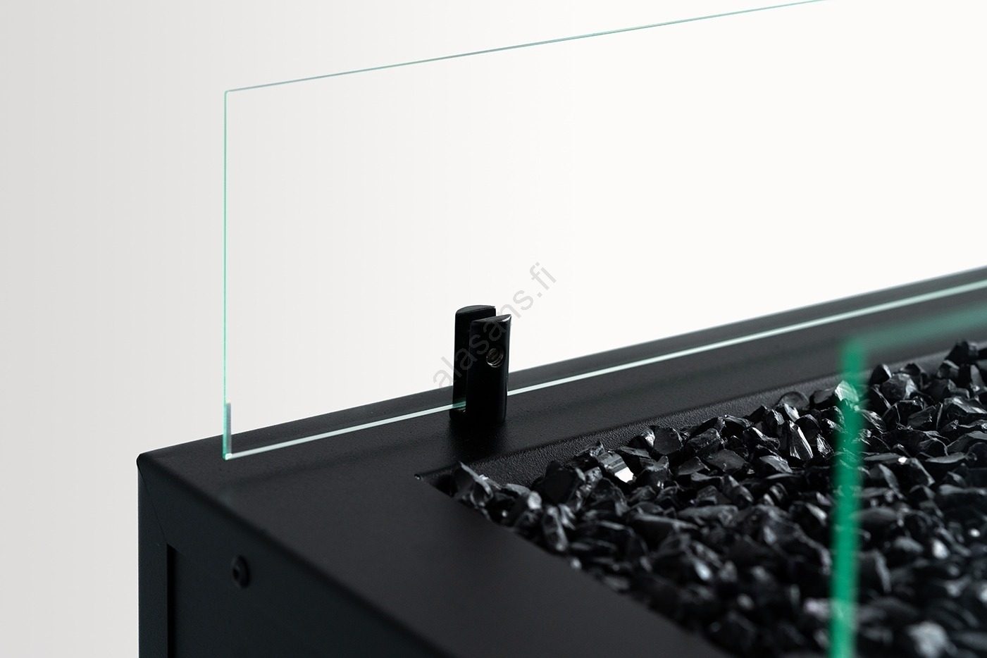 • Takassa on suojaava karkaistu lasi, joka paitsi takaa turvallisuutesi, myös ylläpitää liekin vakautta.