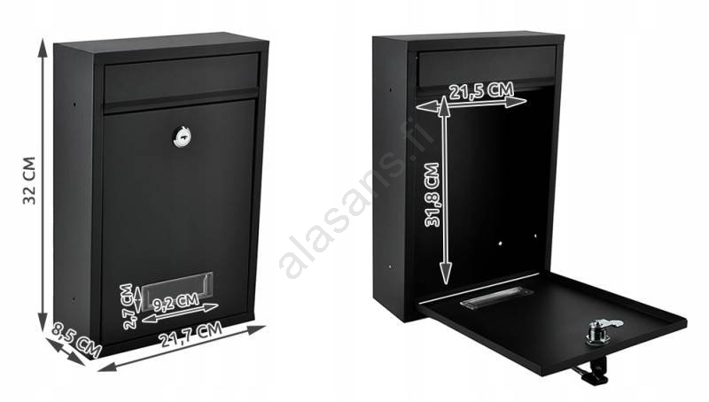 Postilaatikko 21,7 x 32 cm, musta | Alasans