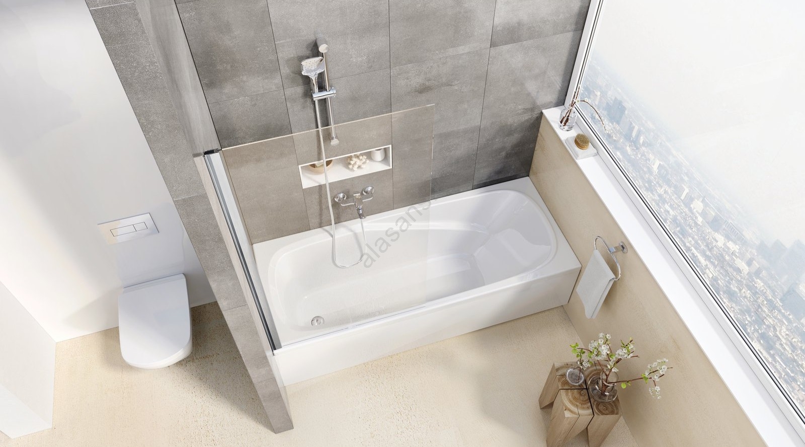 • Sen voi täydentää ammeen suihkuseinällä, jolloin siitä muodostuu täysipainoinen tila myös suihkutteluun.