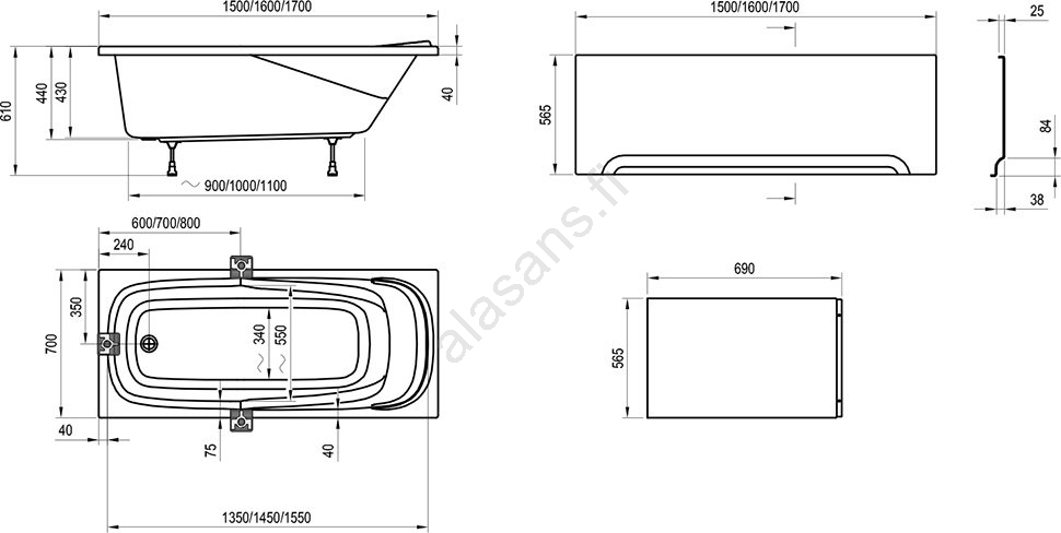 • Mitat 160 x 70 cm ja tilavuus 180 l tarjoavat miellyttävän tilan mukavaan kylpyyn.
