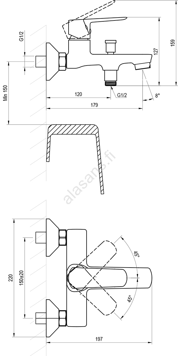 • Keskietäisyys: 150 mm.