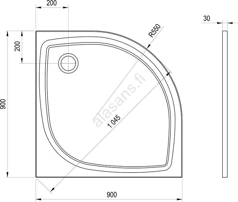 Ravak XA237711010B - ELIPSO neljänneksenympyrän muotoinen suihkualusta 90 x 90 cm, valkoinen | Alasa