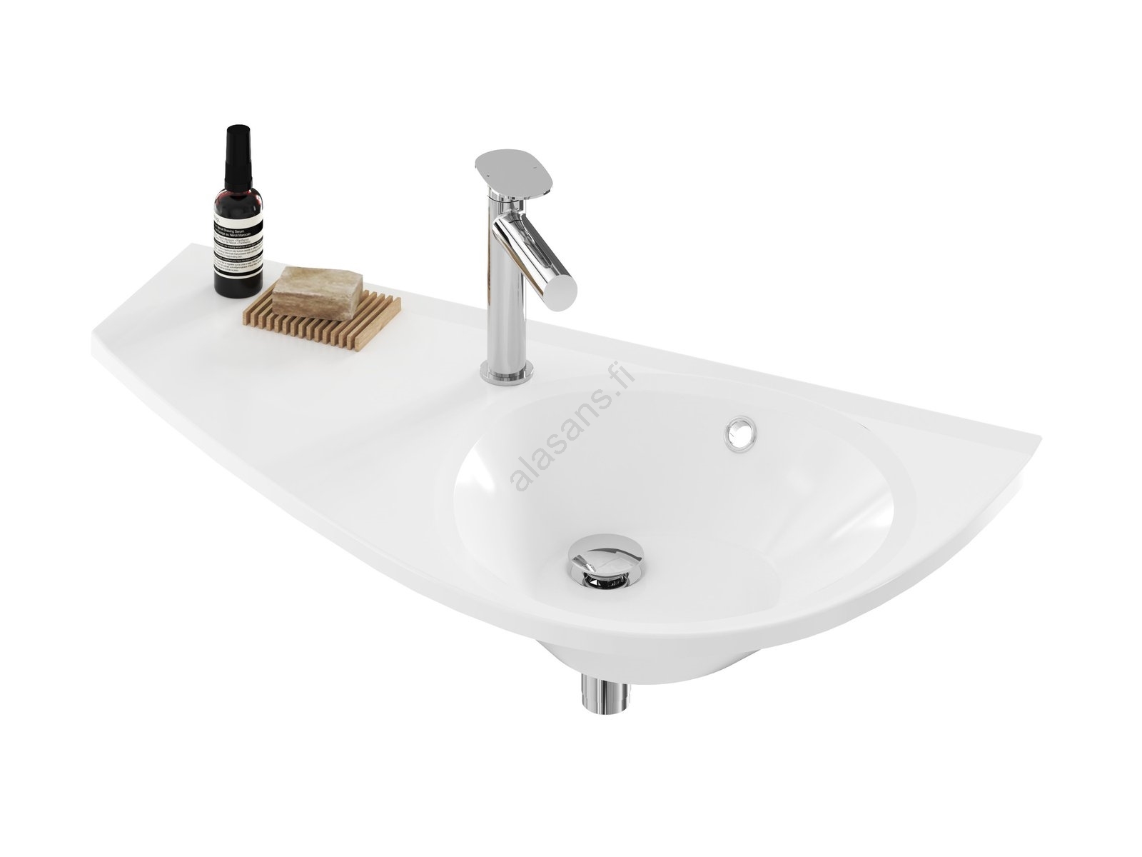 • Pesualtaan mitat ovat 85 x 45 cm, joten se sopii myös kapeampiin tiloihin, esimerkiksi Avocado-ammeen yläpuolelle.