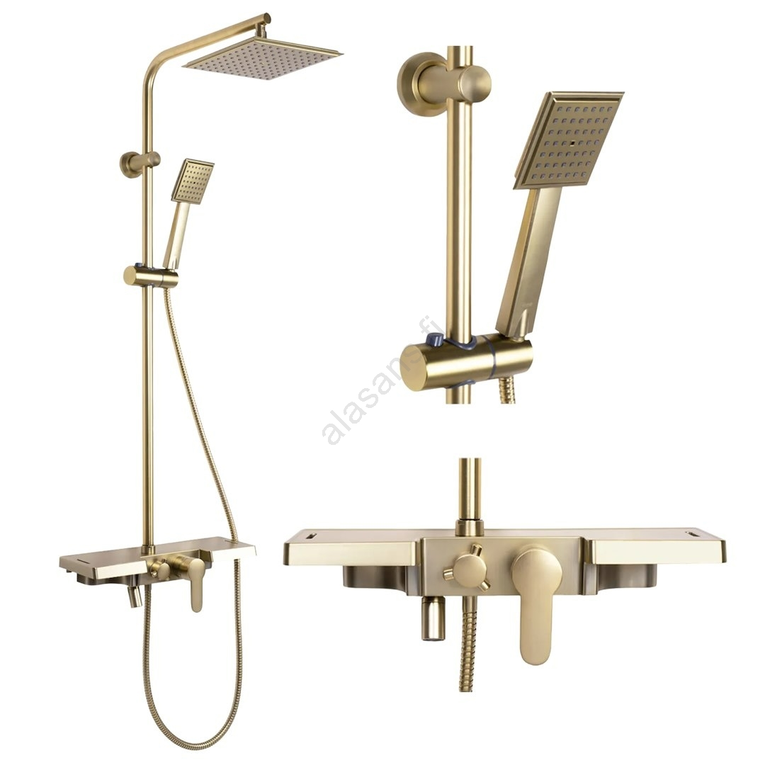REA-P4121 - BRAVO-suihkusetti sekoittajalla, harjattu kulta | Alasans