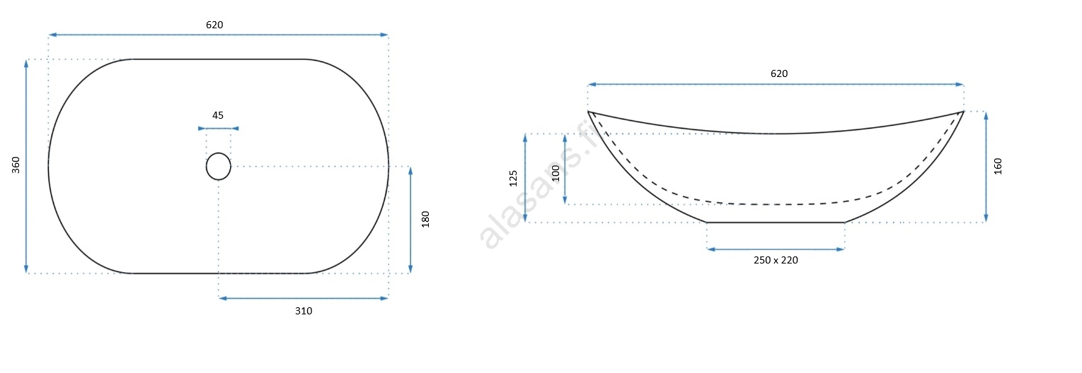 REA-U0441 - Tasolle asennettava pesuallas ROYAL 35,5x61,5 cm keraaminen/kiiltävä valkoinen | Alasans