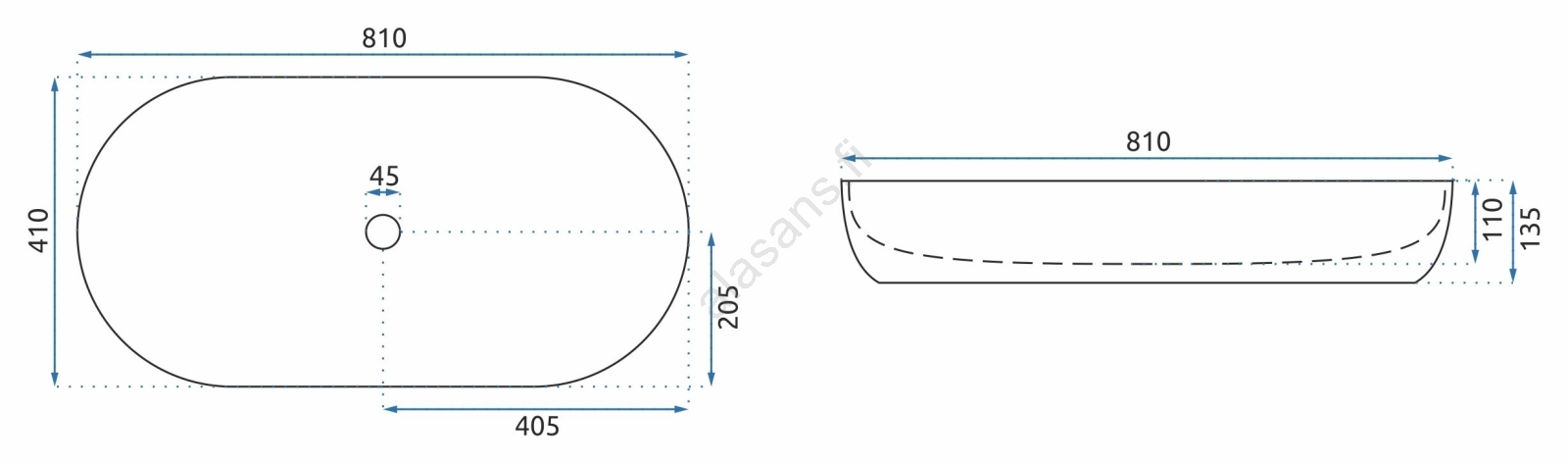 REA-U0563 - Tasoon asennettava pesuallas CLEO 41x81 cm keramiikka/kiiltävä valkoinen | Alasans