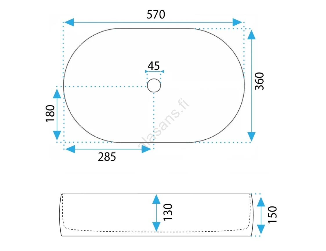 REA-U0600 - ALMA pöytätason pesuallas 36x57 cm keramiikka/kiiltävä valkoinen | Alasans