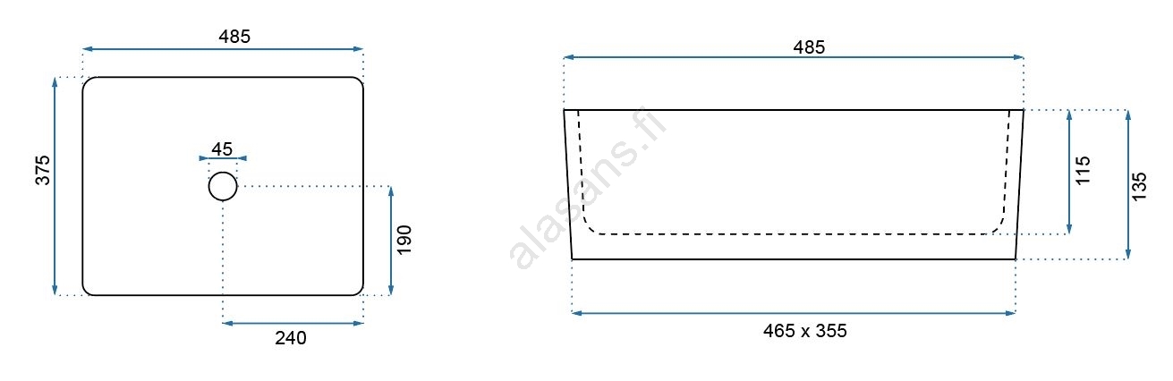 • Moderni ja tyylikäs pesuallas ilman ylivuotoreikää.