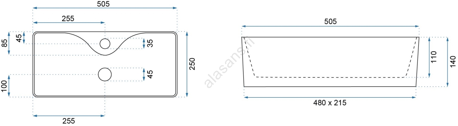 REA-U0699 - Pöytätason pesuallas MERY 25x50,5 cm keramiikka/kiiltävänvalkoinen | Alasans