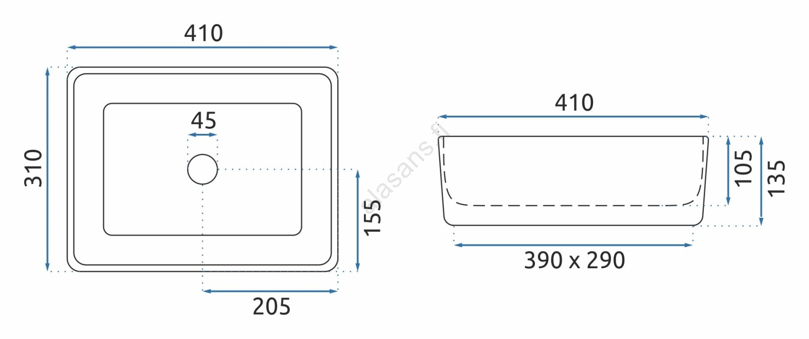 REA-U0952 - Tason päälle asennettava pesuallas ANITA MINI 31x41 cm keramiikka/kiiltävä valkoinen | A