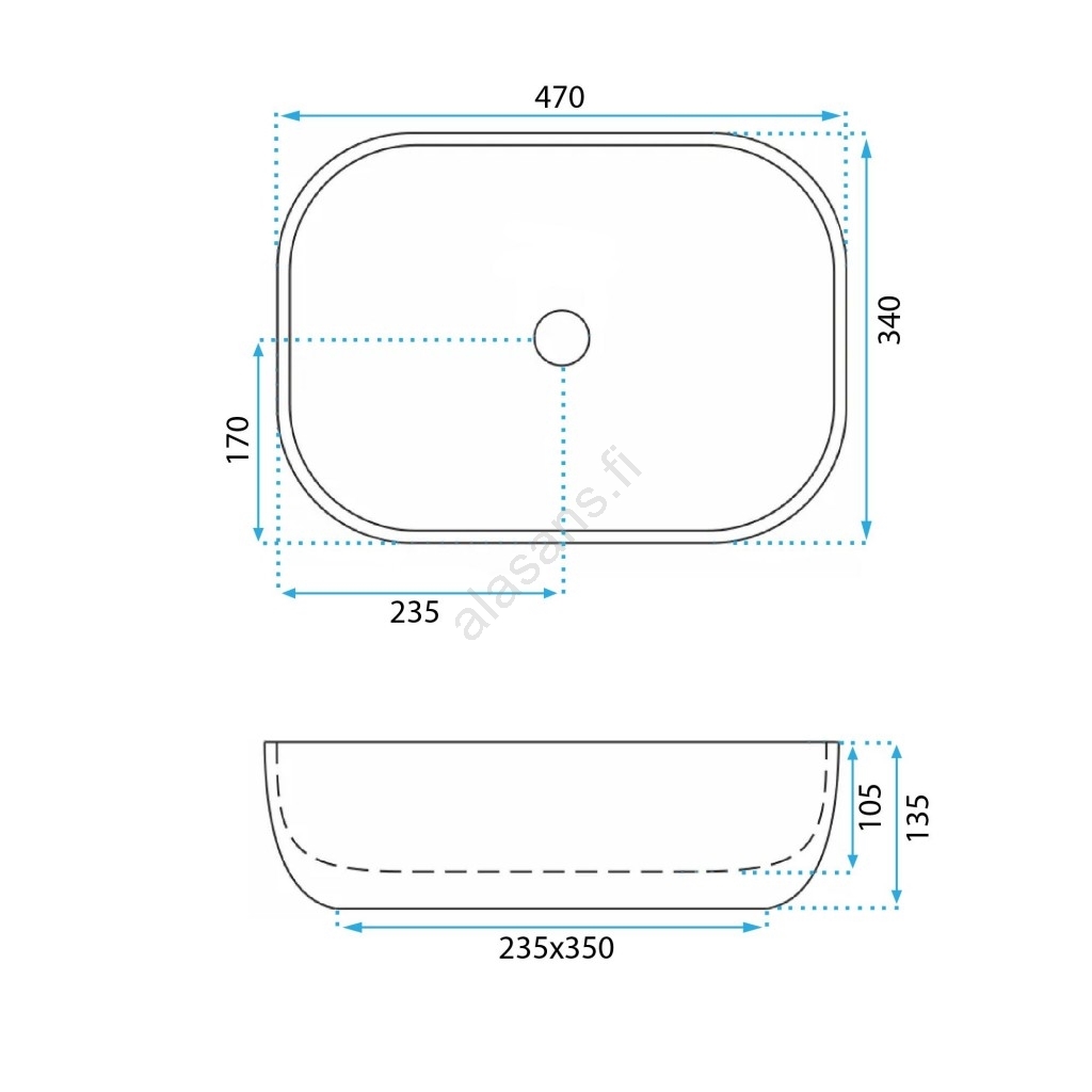 REA-U3323 - Pesuallas pöytätasolle BELINDA 33,5x46,5 cm keramiikka/kivijäljitelmä | Alasans