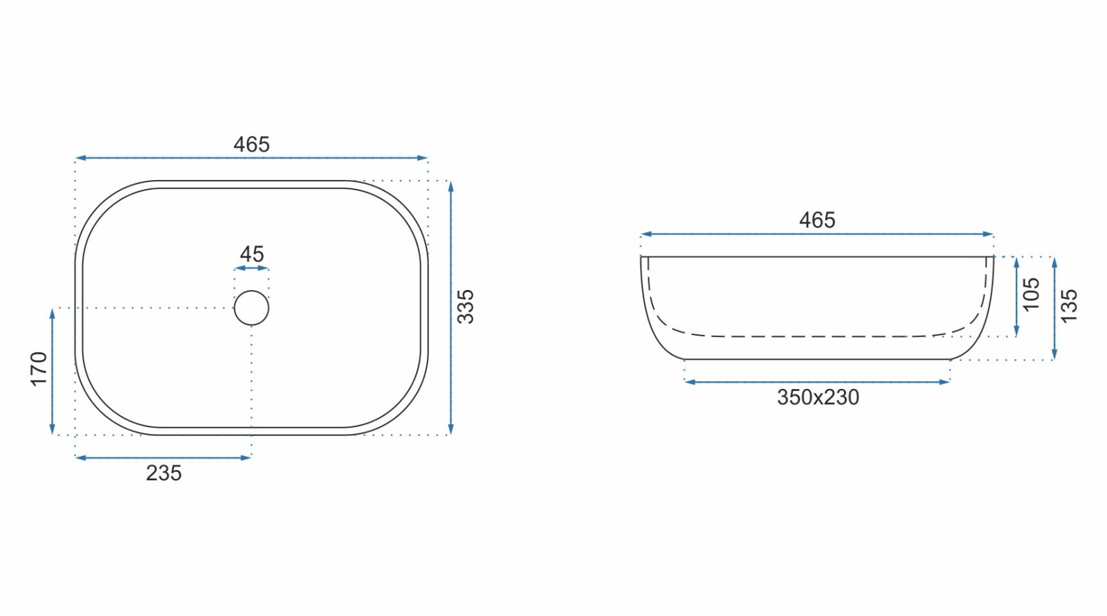 • REA-U6521 - BELINDA SLIM pöytätason pesuallas 33x46,5 cm keramiikka/kiiltävä valkoinen