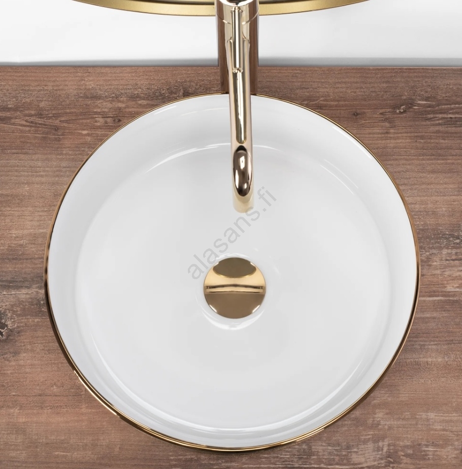 REA-U6630 - SAMI pöytätason pesuallas Ø 36 cm keramiikka/valkoinen/harjattu kulta | Alasans