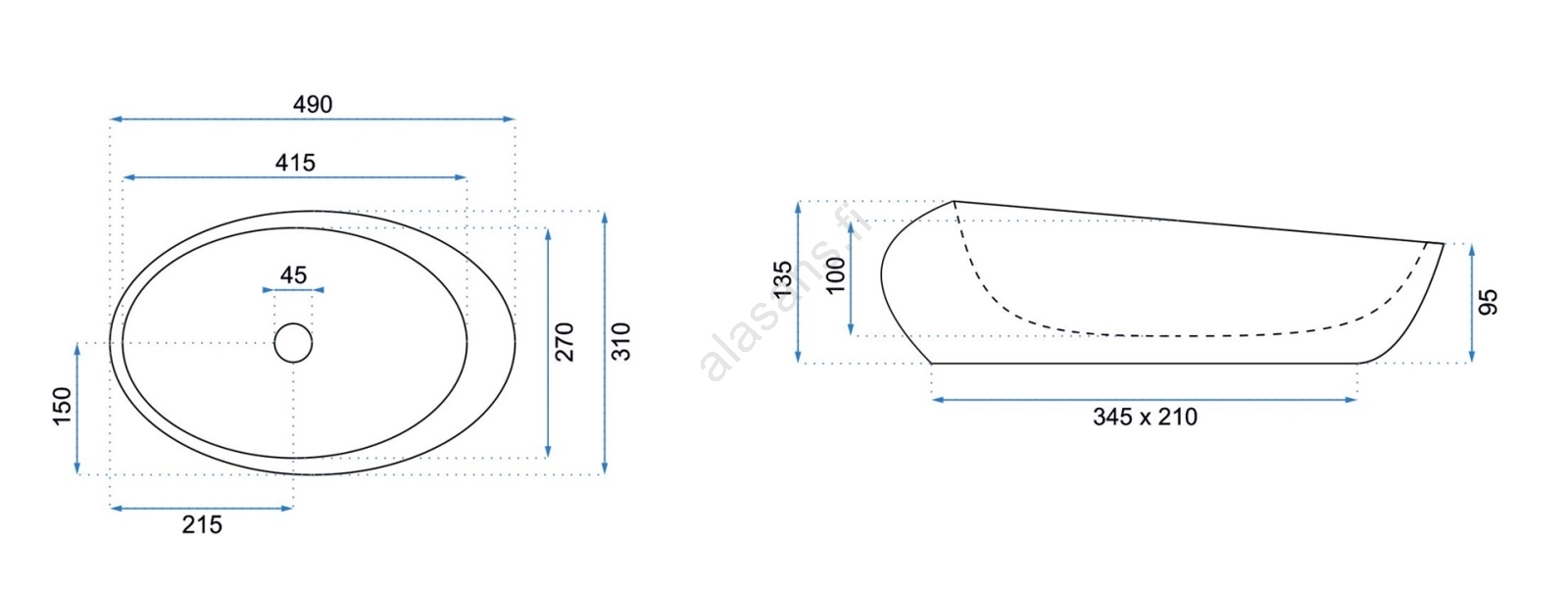 REA-U6650 - Päälleasennettava pesuallas ROXY 31x49 cm keraaminen/harmaa/marmorikuvio | Alasans