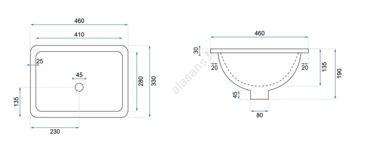 REA-U6653 - Upotettava pesuallas ADELA 33x46 cm keramiikka/kiiltävä valkoinen | Alasans