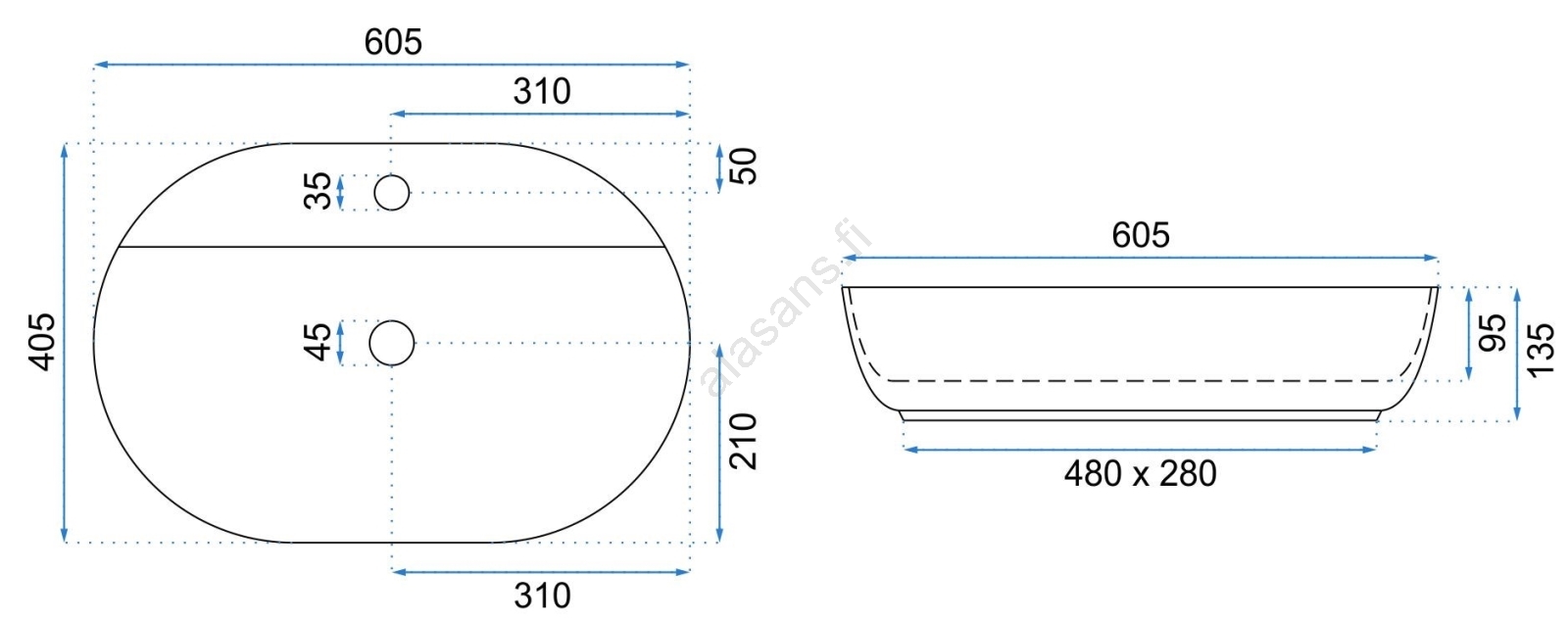 REA-U7900 - Pöytätason pesuallas AURA 40,5x60,5 cm keramiikka/kiiltävä valkoinen | Alasans