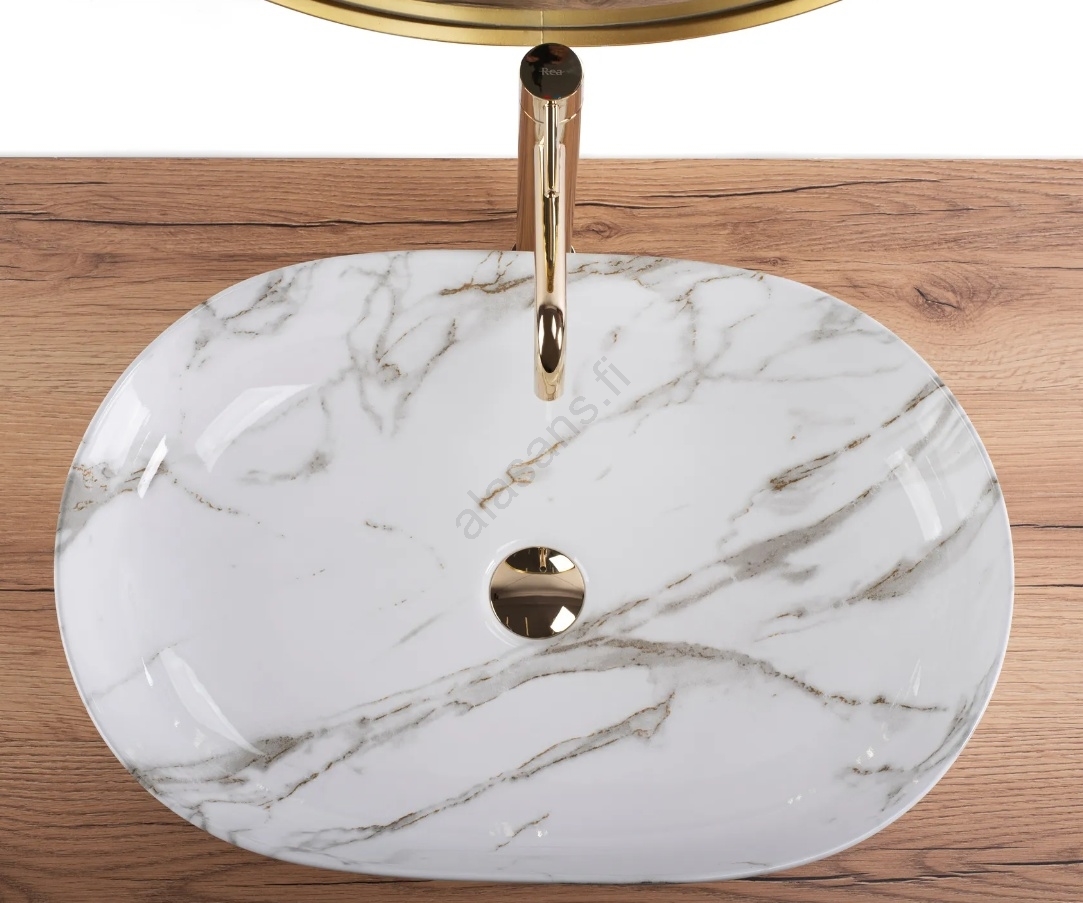 REA-U9656 - Tasoon asennettava pesuallas CLEO 41x60,5 cm keraaminen/marmorikuvio | Alasans