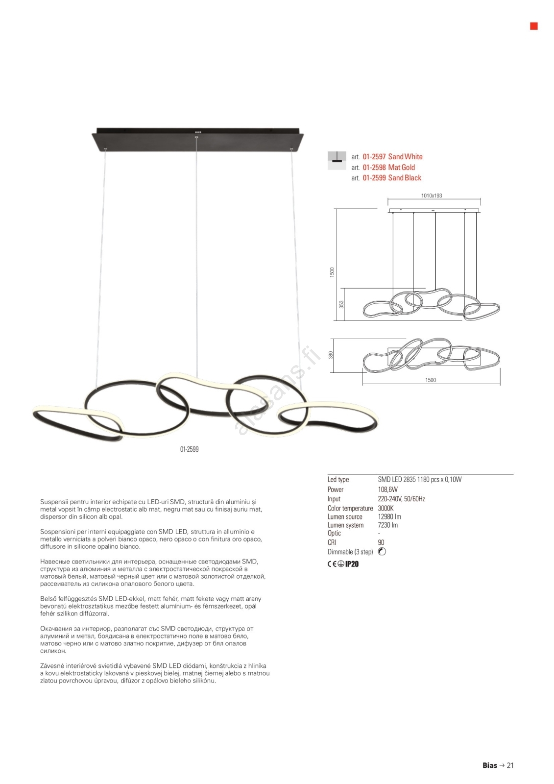 • Redo 01-2594 - Himmennettävä LED-kattokruunu johdossa BIAS LED/87,4W/230V CRI 90 3000K valkoinen
