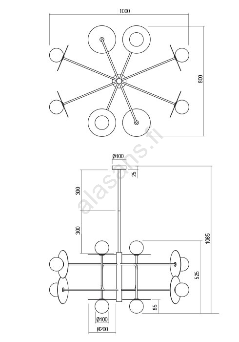 Redo 01-2753 - Varrellinen kattokruunu PLATO 8xG9/10W/230V musta merkitsee kaunista ja toimivaa muotoilua.  Valoon sopii polttimo, jossa on G9-kanta. Täältä voit ostaa myös muita lamppuja edulliseen hintaan. Mielenkiintoinen lisä kotiisi.