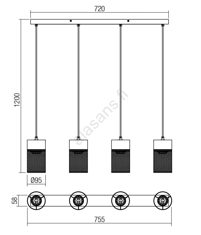 Redo 01-3143 - Kattokruunu johdossa STEM 4xE27/42W/230V | Alasans