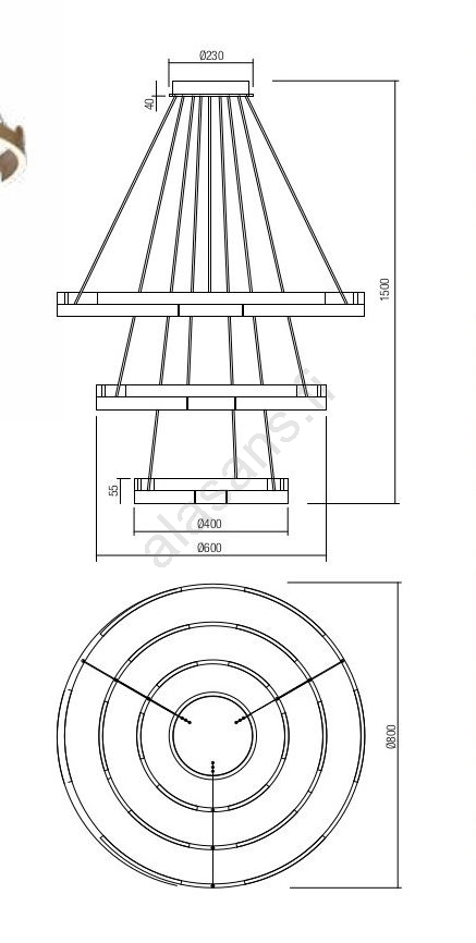 • Redo 01-3181 - Himmennettävä LED-kattokruunu johdossa CASTLE LED/80W/230V kulta