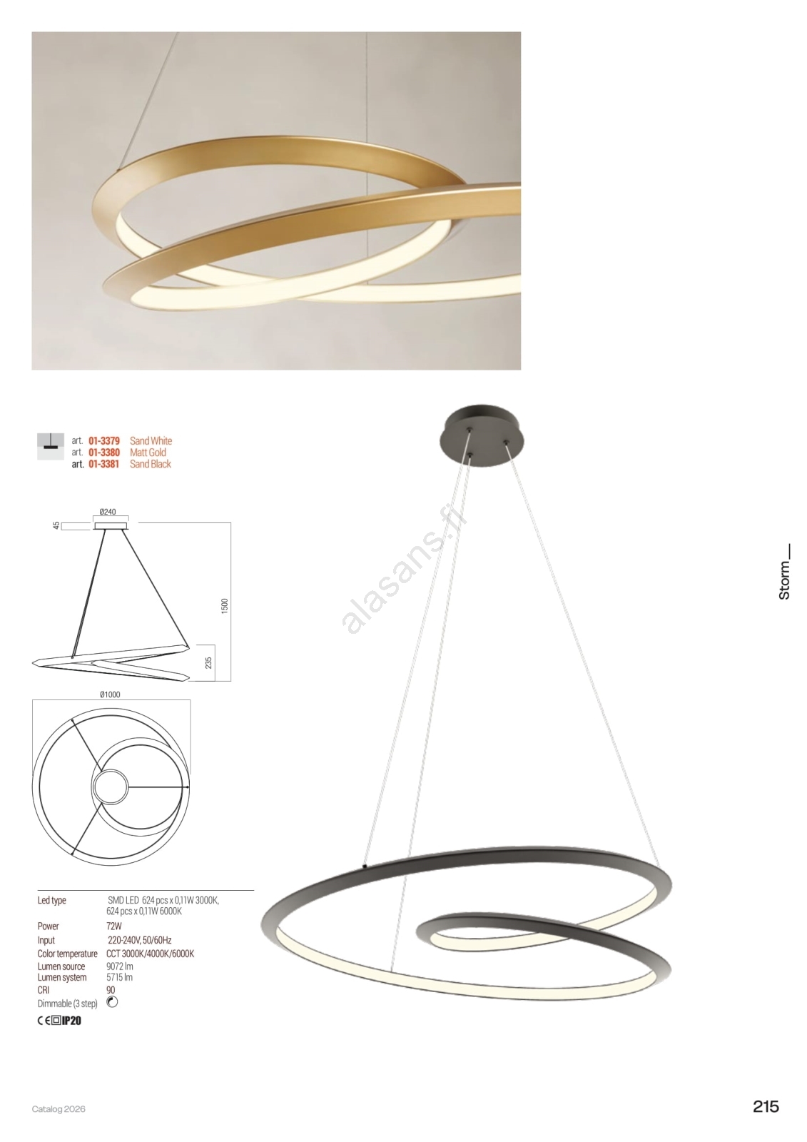 • Redo 01-3377 - Himennettävä LED-riippuvalaisin STORM LED 60 W, 230 V, 3000/4000/6000 K, CRI 90, halkaisija 80 cm, kultainen