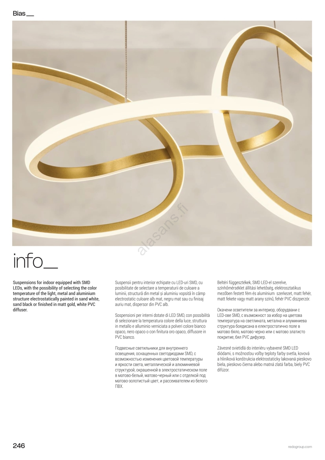 • Redo 01-3389 - Himennettävä BIAS-riippuvalaisin vaijerilla LED/90W/230V 3000/4500/6500K CRI 90, kultainen