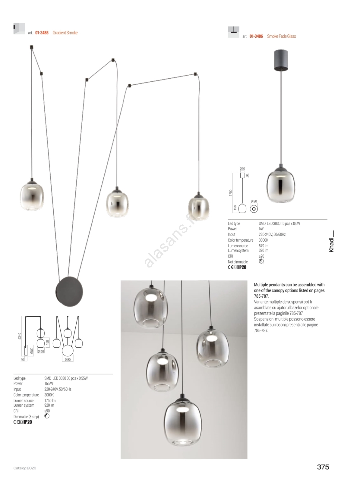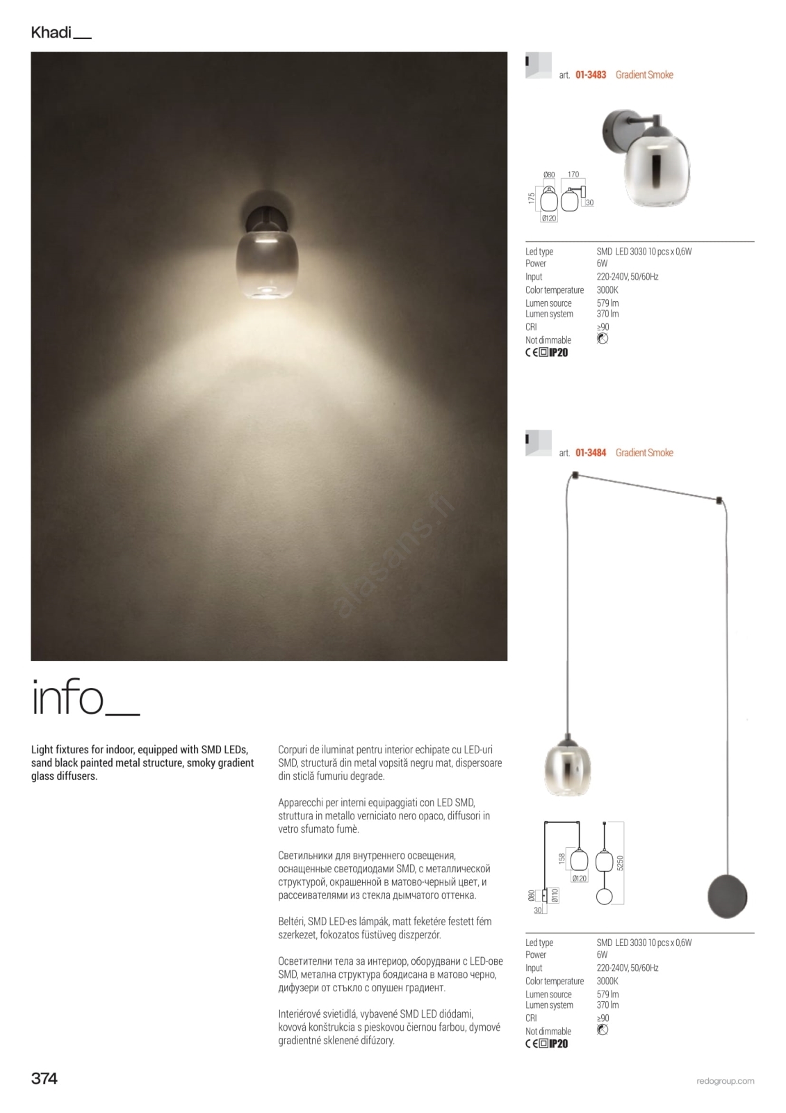 Redo 01-3485 - LED-himmennettävä seinävalaisin KHADI 3xLED/5,5W/230V musta/savunharmaa | Alasans