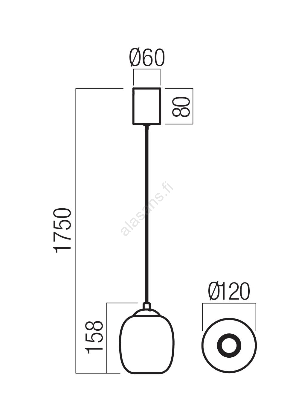 Redo 01-3486 - KHADI LED-riippuvalaisin vaijerilla, 6W, 230V, CRI90, halkaisija 12 cm, musta/savunha