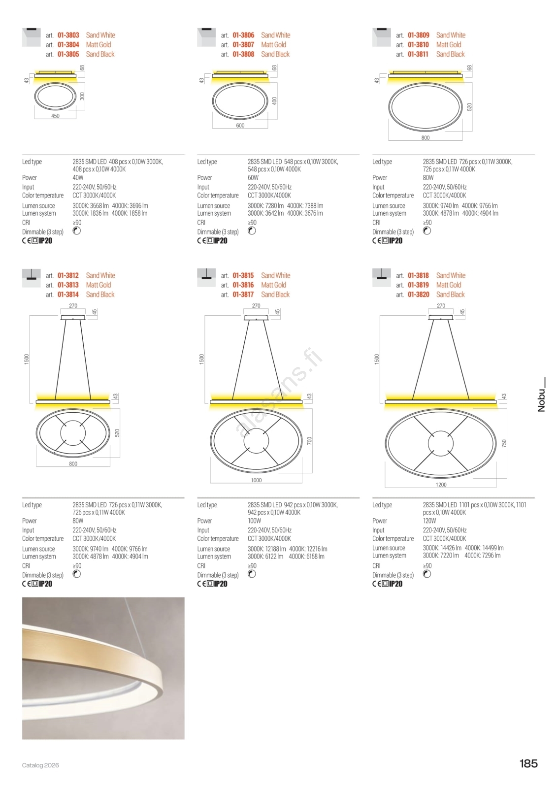 • Redo 01-3809 - NOBU himmennettävä LED-kattovalaisin 80W/230V 3000/4000K CRI 90 valkoinen
