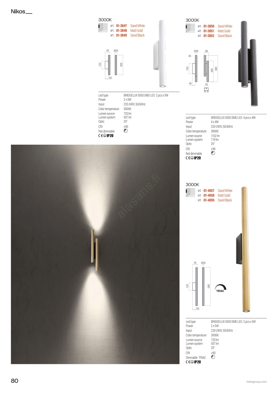 Redo 01-4057 - NIKOS LED himmennettävä seinävalaisin LED/10W/230V, valkoinen | Alasans