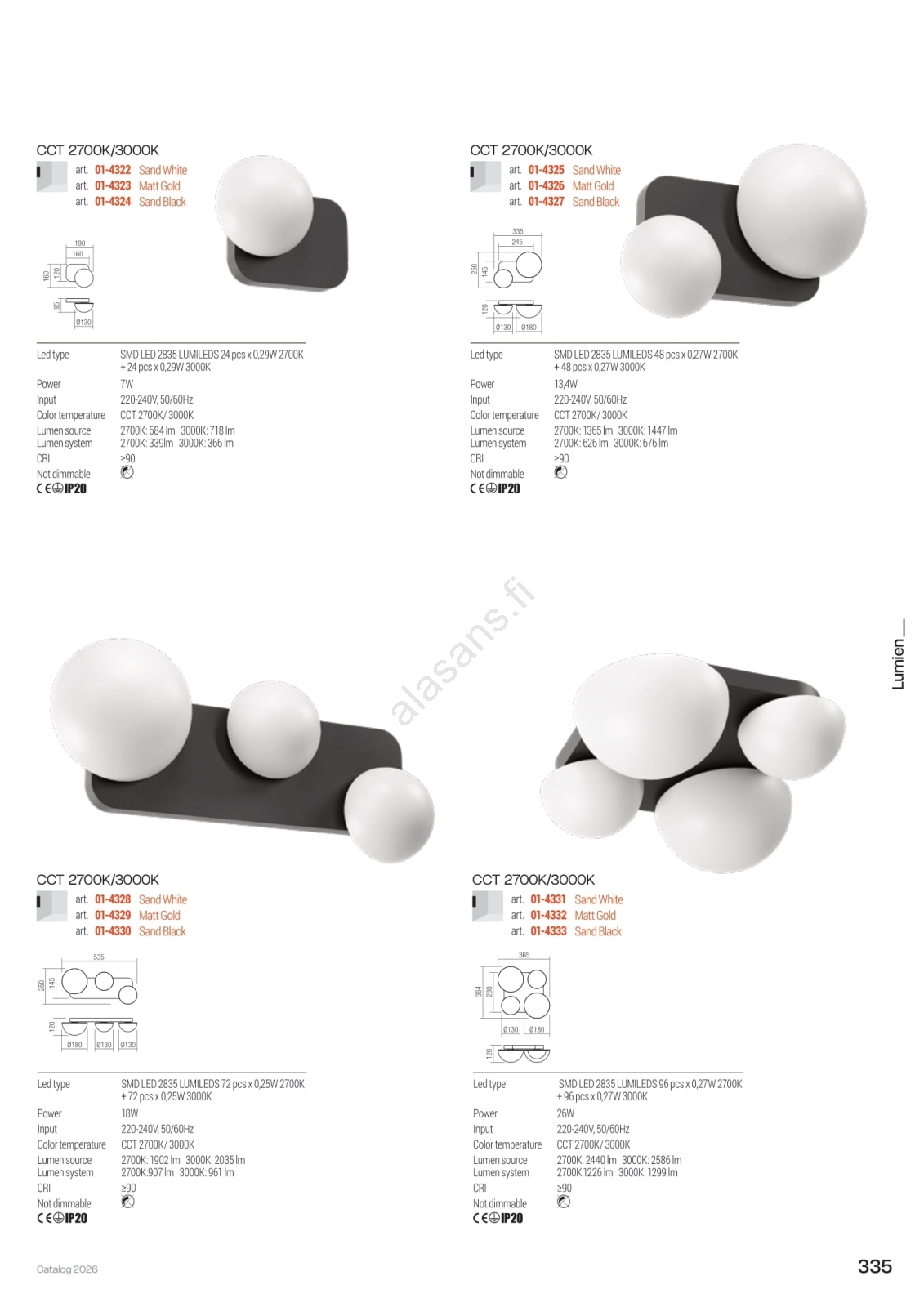 Redo 01-4329 - LUMIEN LED-seinävalaisin 3x LED / 18 W / 230 V, 2700/3000 K, kultainen | Alasans