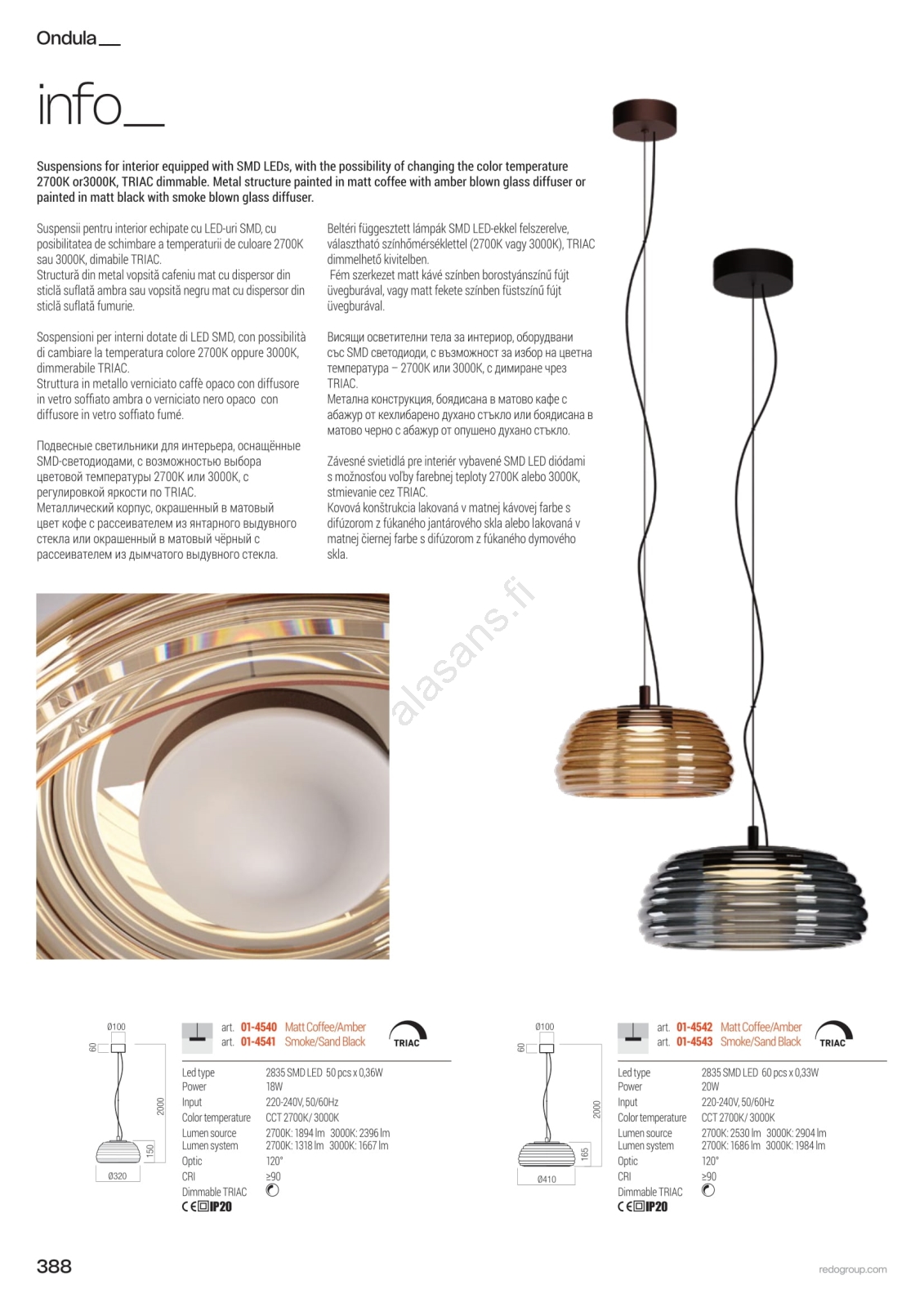 • Redo 01-4541 - ONDULA LED-himmennettävä riippuvalaisin vaijerilla LED/12W/230V 2700K/3000K CRI 90 halkaisija 32 cm musta/savunharmaa