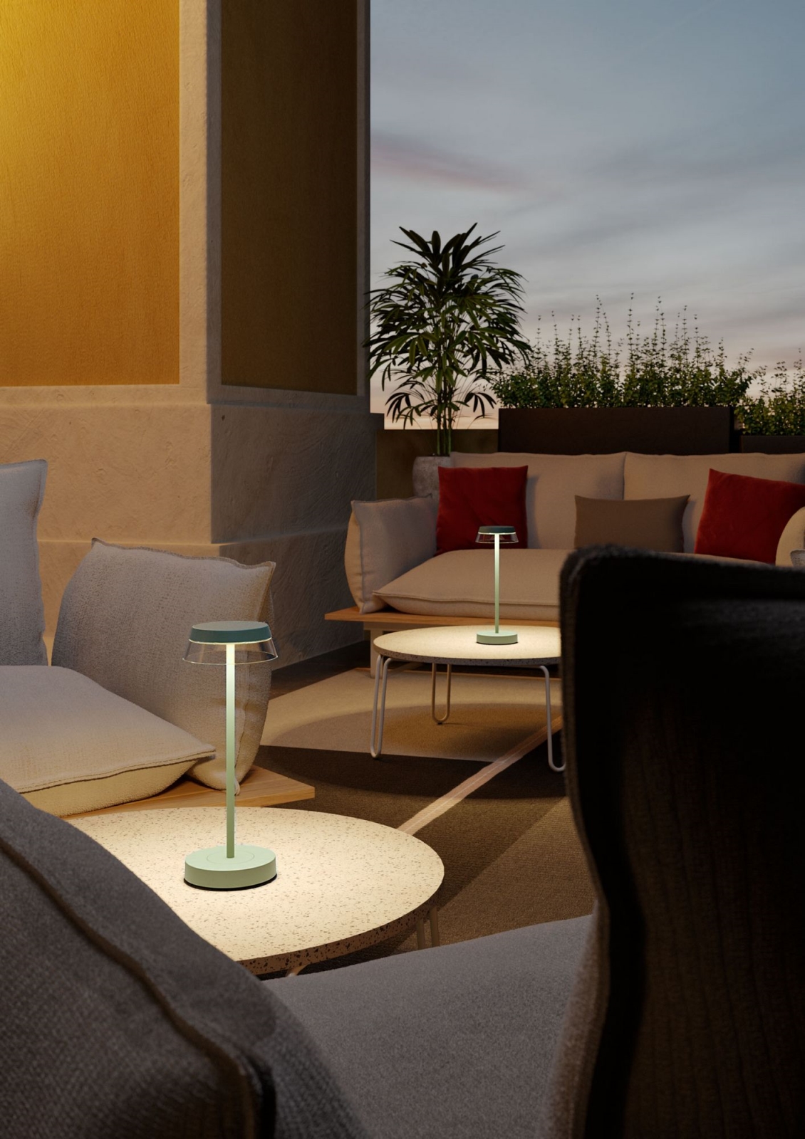 Redo 90309 - ILUNA LED/2,5W/5V 3000 mAh IP65 säädettävä pöytävalaisin, vihreä | Alasans