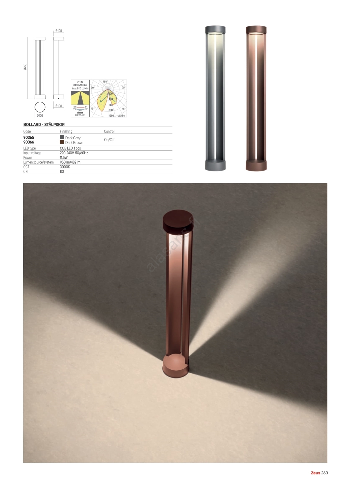 Redo 90365 - LED-ulkovalaisin ZEUS LED/11,5 W/230 V 3000 K 75 cm IP54 antrasiitti | Alasans