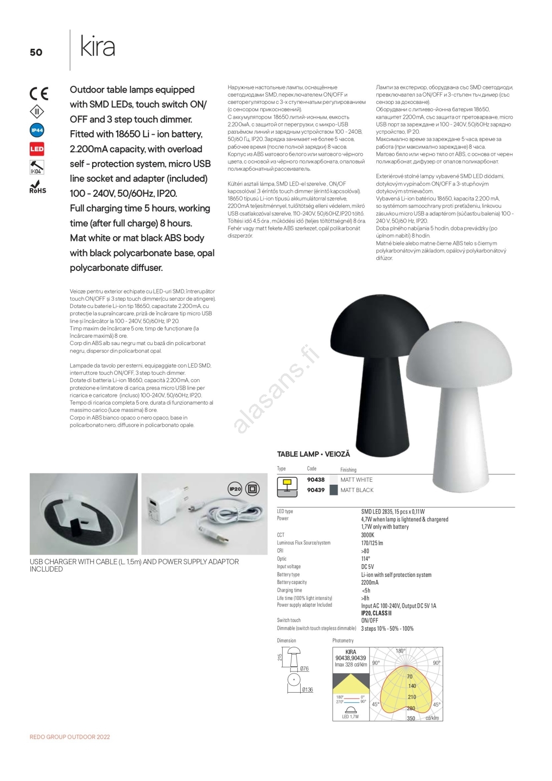 Redo 90438 - kosketusohjattu himmennettävä LED-lamppu KIRA LED/4,7W/230V 2200 mAh valkoinen | Alasan
