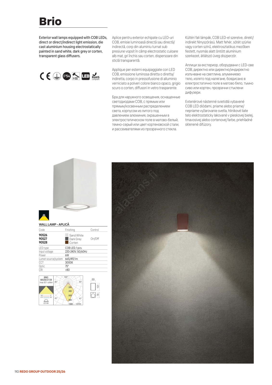 Redo 90527 - BRIO LED-ulkoseinävalaisin 6W/230V 3000K IP54 antrasiitti | Alasans