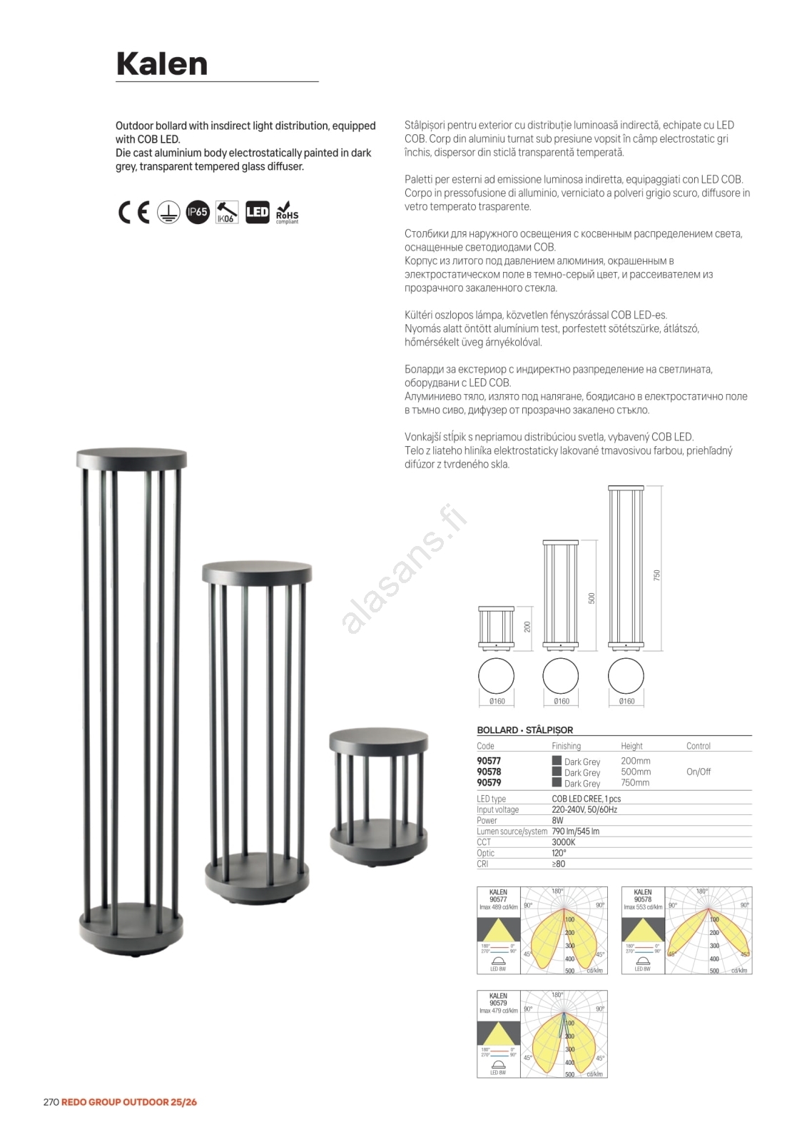 Redo 90578 - LED-ulkovalaisin KALEN LED/8W/230V 3000K 50 cm IP65 antrasiitti | Alasans