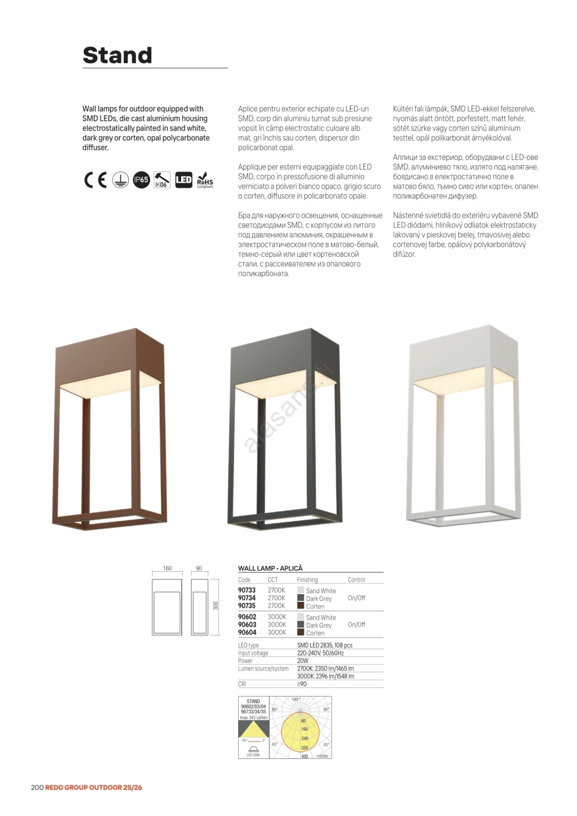 • Redo 90603 - STAND LED-seinävalaisin ulkokäyttöön 20W/230V 3000K CRI 90 IP65, antrasiitti